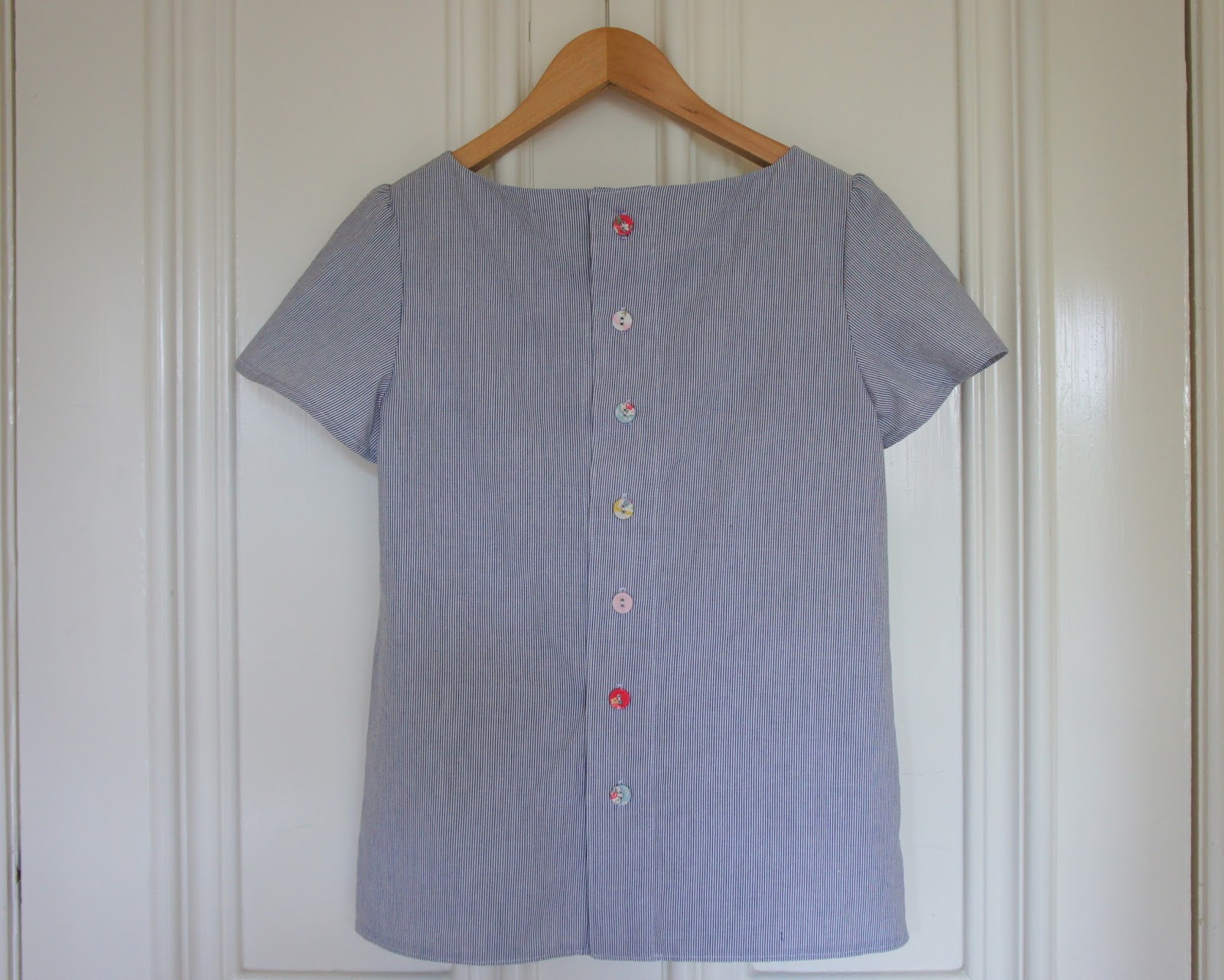 J’aime beaucoup le tissu qui devrait être facile à assortir. Je me suis amusée avec les boutons. Je pensais poser des boutons noirs et puis ceux-ci m’ont semblé plus sympa, qu’en pensez-vous???