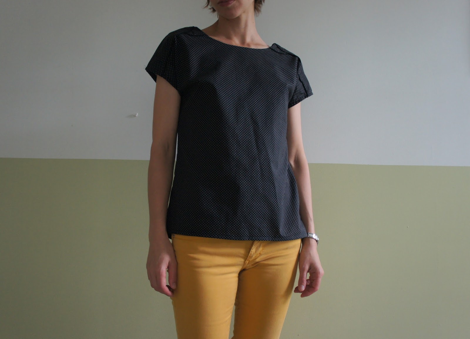 Voilà, patron rapide et efficace qui rentre dans moins d’un mètre de tissu. L’ajout du passepoil apporte un peu de rigidité au tombé de la manche mais rien de méchant. Mon tissu a tendance à se froisser rapidement comme on le voit sur les photos, n’empêche que ce top devrait se marier avec une grosse partie de ma garde-robe… trop top 😉
